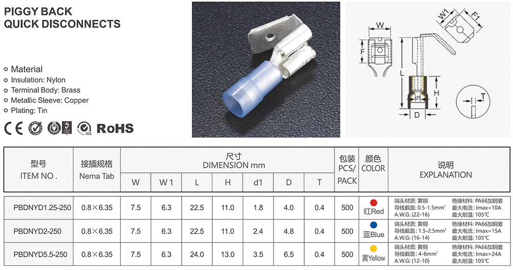 雙壓接式尼龍肩背形公/母預(yù)絕緣接頭