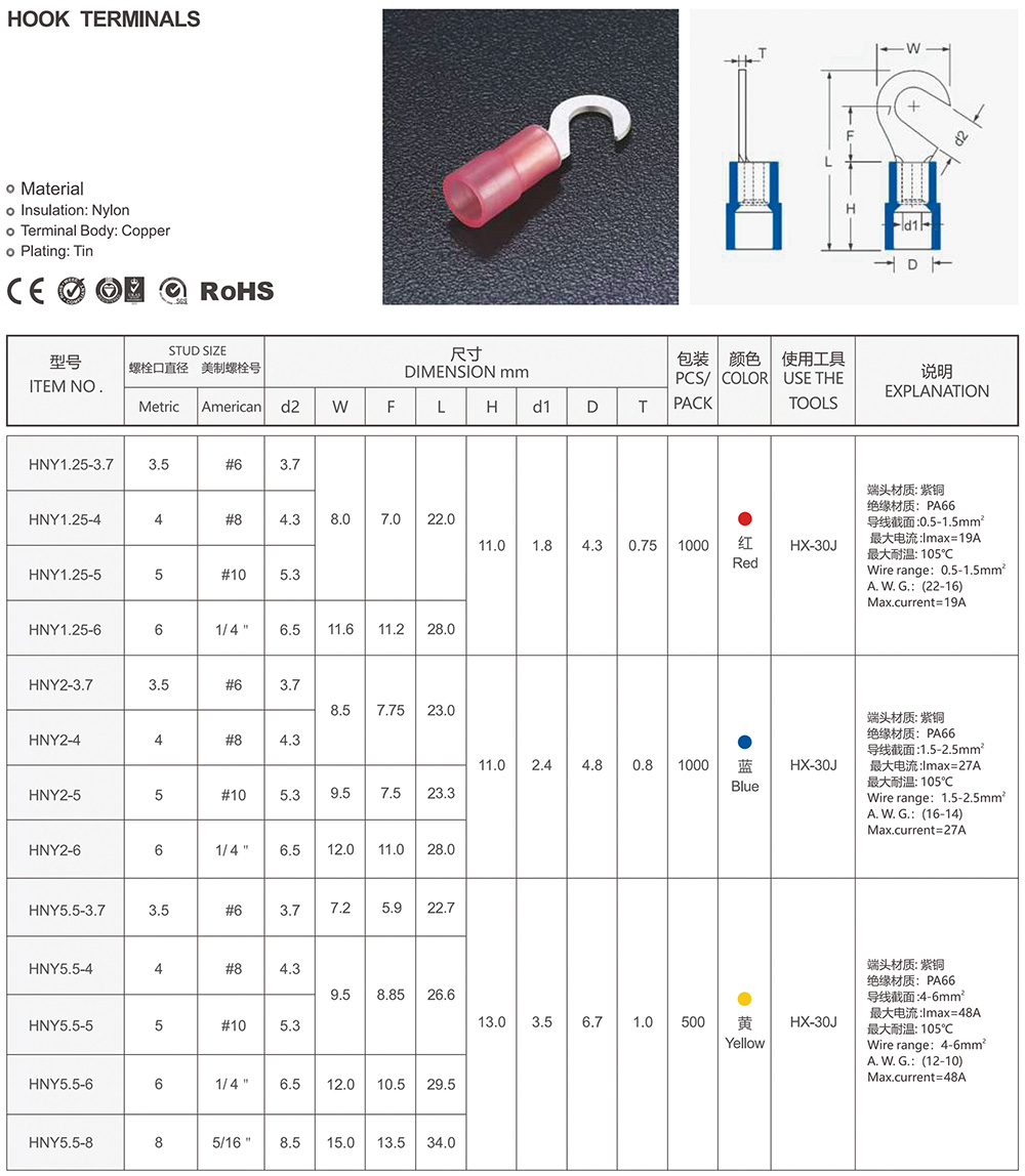 圓形預(yù)絕緣端頭(RV型)